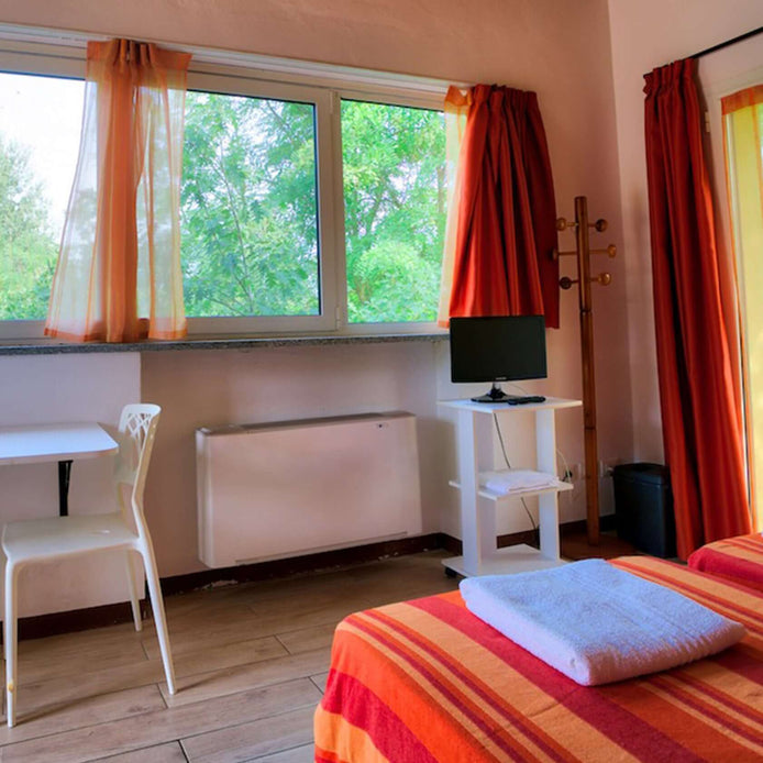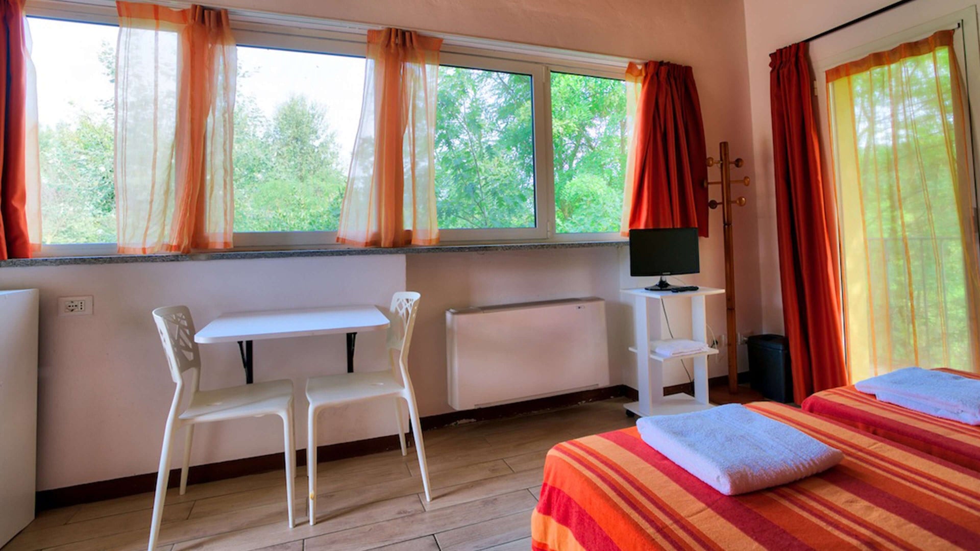 Matrimoniale o due letti. Del croccante frutto oltre al colore ha molteplici requisiti porta finestra sul retrostante bosco, terrazzino di accesso, bagno attrezzato per diversamente abili